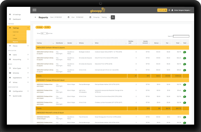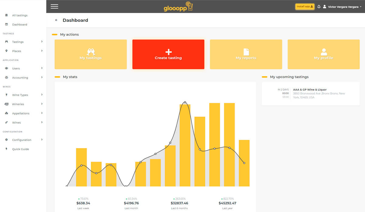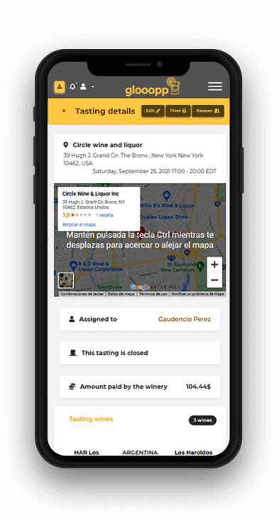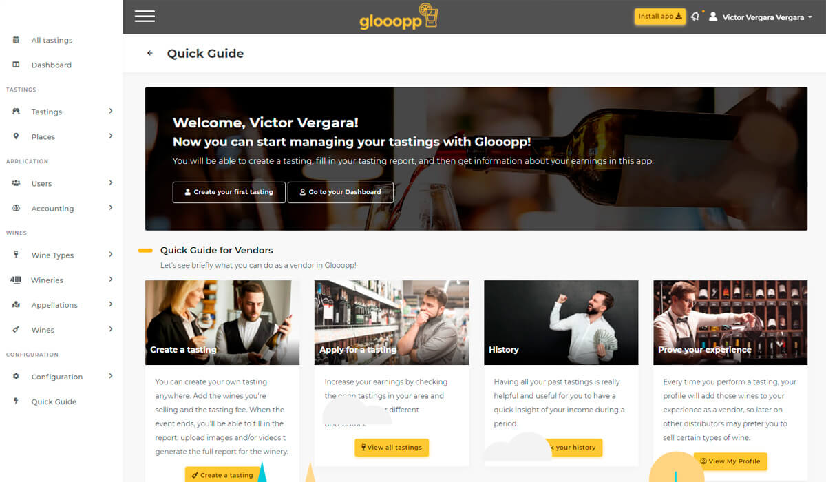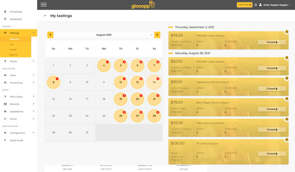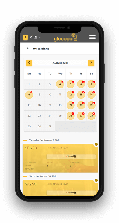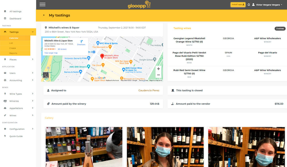 Glooopp allows users to create and manage tastings that will be executed by vendors in stores or even restaurants.
